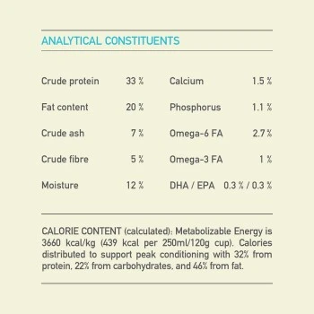 Die täglich frisch verarbeitete Welpennahrung enthält wenige Kohlenhydrate, mit gedünstetem, geschrotetem Hafer als EINIZIGES, niedrigglykämisches Getreide – mit nur 15% vom Gesamtanteil noch weniger als in der bisherigen Rezeptur.