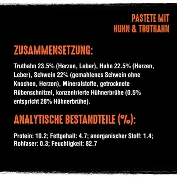| Optionen | Huhn und Truthahn, Rind und Lamm |