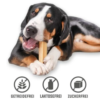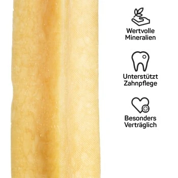 Falls dem Hund der ganze Kaukäse allgemein zu hart ist – nicht wegwerfen, denn den Käse in der Mikrowelle aufzupuffen funktioniert natürlich auch mit der ganzen Stange! Der YAKY Kaukäse ist geeignet für Hunde ab 4 Monate.